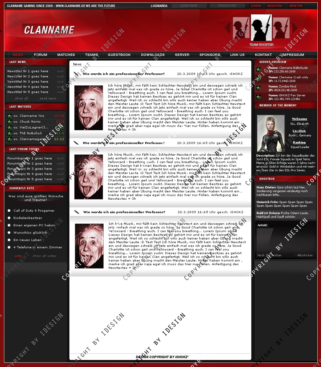 Dies ist ein professionelles Clandesign. Eine übersichtliche und geordnete psd Datei mit allen vorhandenen Ebenen ist vorhanden. Bei weiteren Fragen oder Support wenden sie sich per E-mail an "[email protected]" Dieses Design gibt es auch in Blau, schaut bei meinen Produkten.