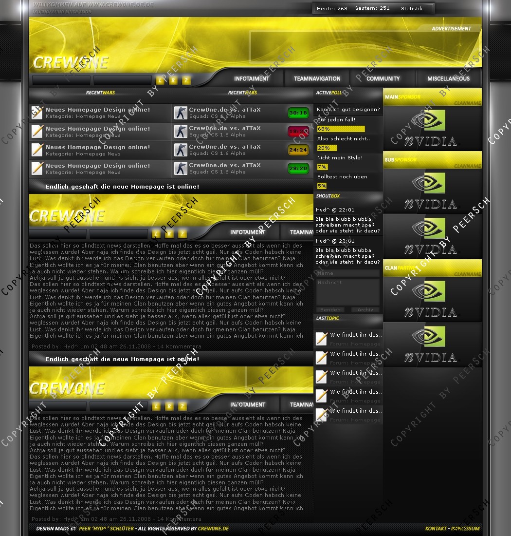 Was Sie hier kaufen ist lediglich die PSD Datei, gerne kann ich es Ihnen gegen einen Aufpreis von 13€ an ein CMS Anpassen, zur Auswahl stehen hierbei: webSPELL, Clansphere, Teklab, Devilz und andere CMS auf Anfrage ohne Aufpreis.